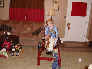 How can you not think he is cute? He is so much fun! He is our little southern boy. Which makes his daddy proud! He has quite the accent. He always says "Yesss III Did" and "How You doin?" He is also our little cowboy. He wants to be just like Justin. He wears his cowboy hat, belt and boots everywhere. Part of his potty training bribe is that we will by him chaps, so that he can ride bulls. He loves to ride everyone! When he gets bucked off he throws his hands in the air and waves his hat. I don't know what I will do if he grows up to be a bull rider. Mom's can't take that.